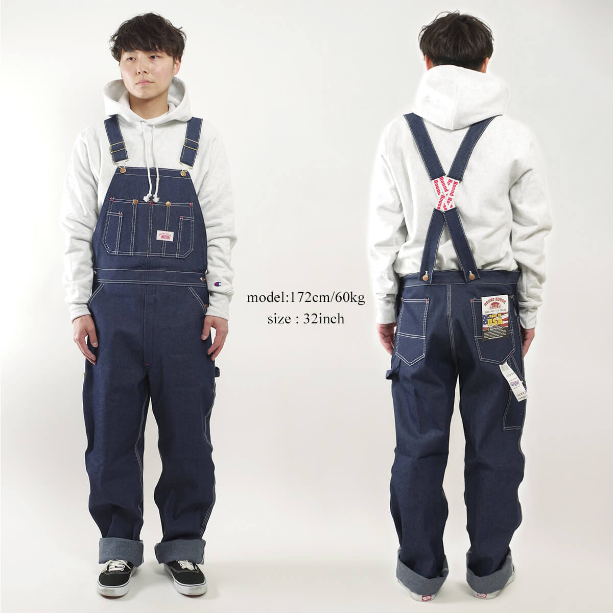 ROUND HOUSE の全商品を見る■商品説明 ラウンドハウスより、デニムオーバーオールの背中なしバージョン#907。