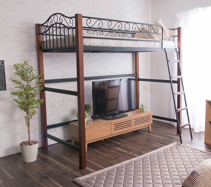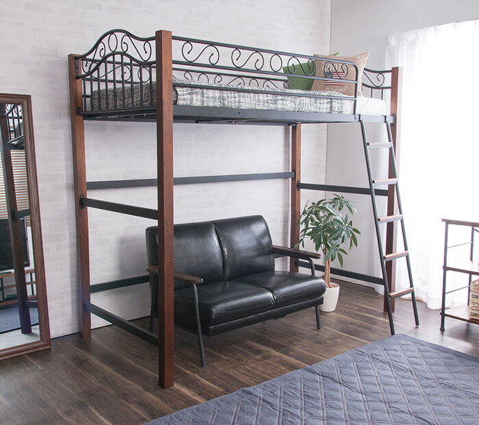 商品名 クラシック調ハイタイプベッド ロフトタイプ 商品説明 ○ロフト下たっぷりのフリースペース!空間の有効活用ができる! ○ワークスペース・くつろぎ空間・収納スペースなど自在に作れます ○天然木×アイアンフレームがぐっとオシャレな空間を演出します ○6cm角の木柱、前面フレーム設計 ○ワイヤーメッシュの床板で年中快適♪